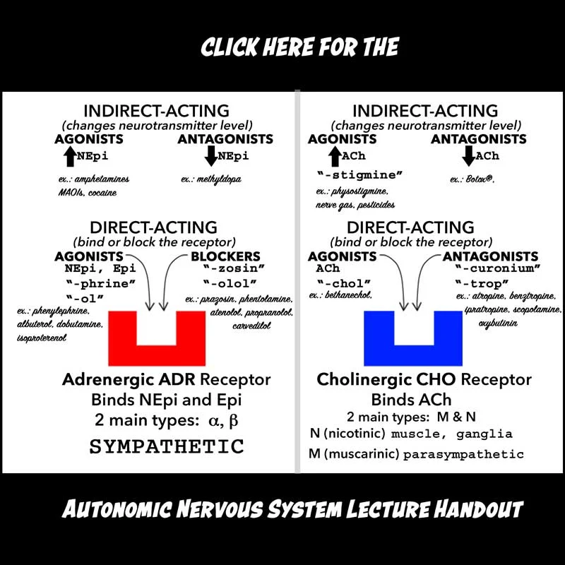 Dr. Boyev’s Girl in the Forest Mnemonic Video: This 3 minute video helps you remember the actions of the sympathetic (Norepinephrine, alpha and beta ADRENERGIC receptors) system. There is no narration, only cool music.