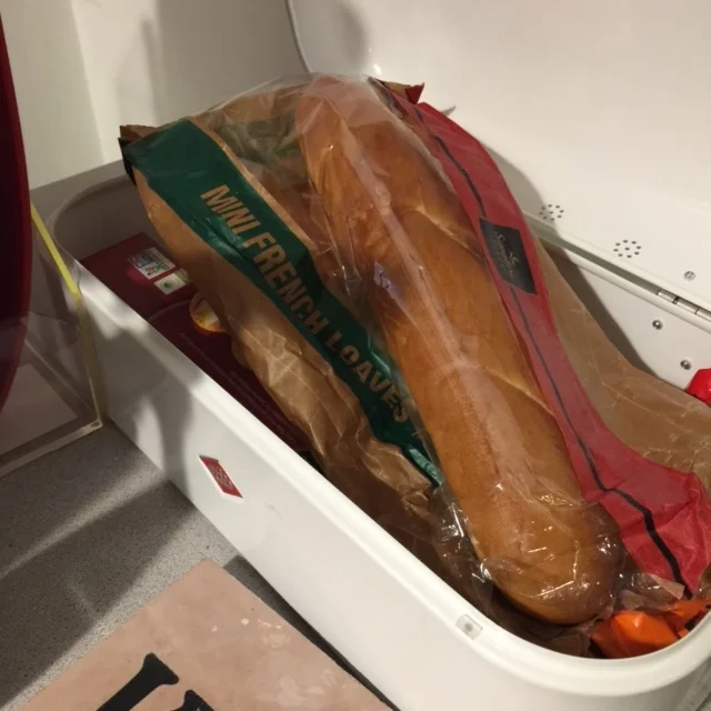 Item 1: A bread box. OMG why did no one tell me about bread boxes? We didn't have one when I was a kid and I cringe at the thought of all the bread that went stale that I had to throw away. Right now I have a Jewel-Osco baguette I bought three days ago that is STILL SOFT. No mold! It's like magic! I bought it because I thought it would hide some groceries in my teeny kitchen. Little did I know I would be so happy with it!